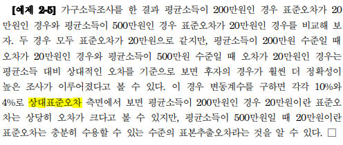 2) 상대표준오차와 변동계수